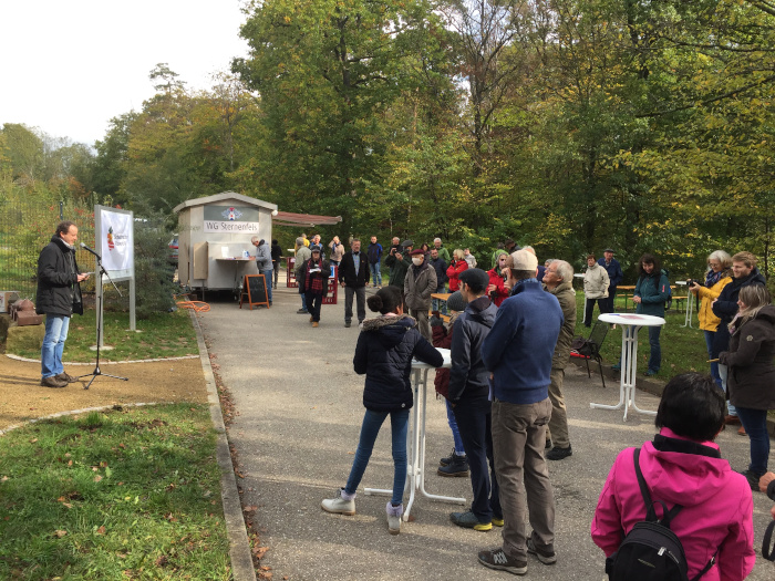 Nahezu 100 Gäste konnten wir am 18. Oktober 2020 am Rastplatz der Bodensee-Wasserversorgung (BWV) bei gutem Wetter begrüßen. Die Wanderung mit unserem Fachwart Reinhold Roller von der Sternenfelser Ortsmitte hinauf zur Betriebsstelle der BWV wurde gerne angenommen. Nach Ansprachen unseres Vorsitzenden Bernd Pelz, unserer Bürgermeisterin Antonia Walch und des BWV-Betriebsstellenleiters Peter Roßnagel wurde die neue Informations- und Wandertafel von unserer Albvereinsjugend enthüllt.