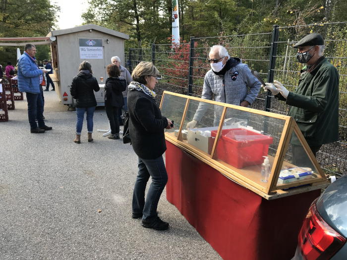 Am gemeinsamen Infostand des Schwäbischen Albvereins und der Bodensee-Wasserversorgung gab es Interessantes zu Natur- und Artenschutz und zur Arbeit der BWV. Das Vesper sponsorte der Zweckverband Bodensee-Wasserversorgung. Vom Zweckverband gab es auch hübsche Wassergläser als Geschenk, mit denen sich die Gäste frisches Trinkwasser am Brunnen holen konnten. Und für leckeren Wein und Sekt sorgte die WG Sternenfels.