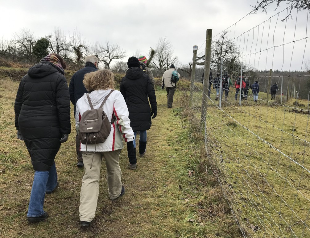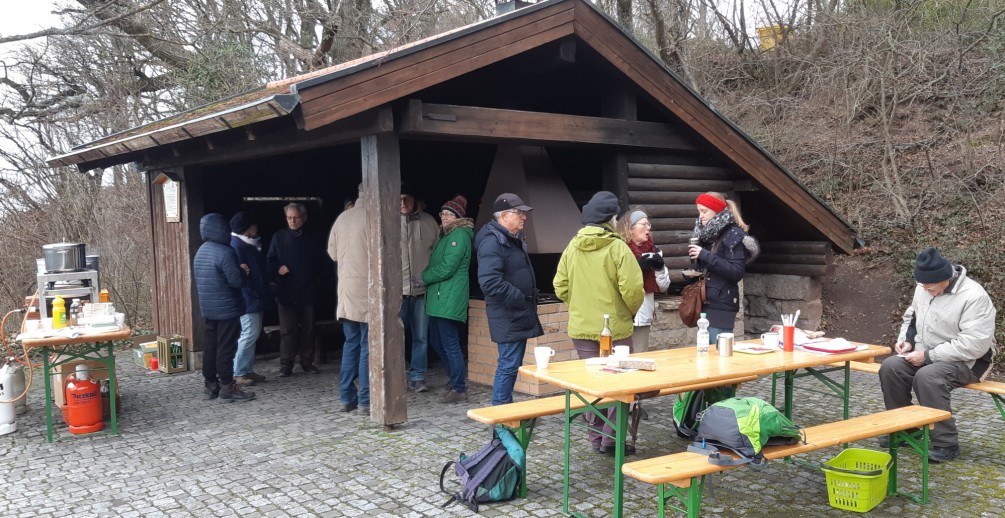 Am Sonntag, den 12. Januar konnten wir über 20 gutgelaunte Wanderer zu unserer Eröffnungswanderung begrüßen. Auch Gäste unserer Nachbarortsgruppen Häfnerhaslach und Oberderdingen waren mit dabei. Unser Wanderführer Reinhold Roller hatte eine schöne und kurzweilige Runde ausgetüftelt, die uns am Wildgehege und am Waldweiher vorbei den Winterberg hoch zur Bodensee-Wasserversorgung führte. Von dort ging es zur Grillhütte am Schlossberg. Unser Vorstandsmitglied Willi Hampp sorgte hier zwischenzeitlich für eine vorbildliche Glut und für Glühwein, der wirklich seinen Namen verdient hat. Der war so heiß, dass der eisige Wind schnell vergessen war. Für die Kinder gab es selbstgebrauten leckeren Punsch, nicht von minderer Temperatur.