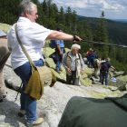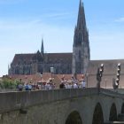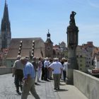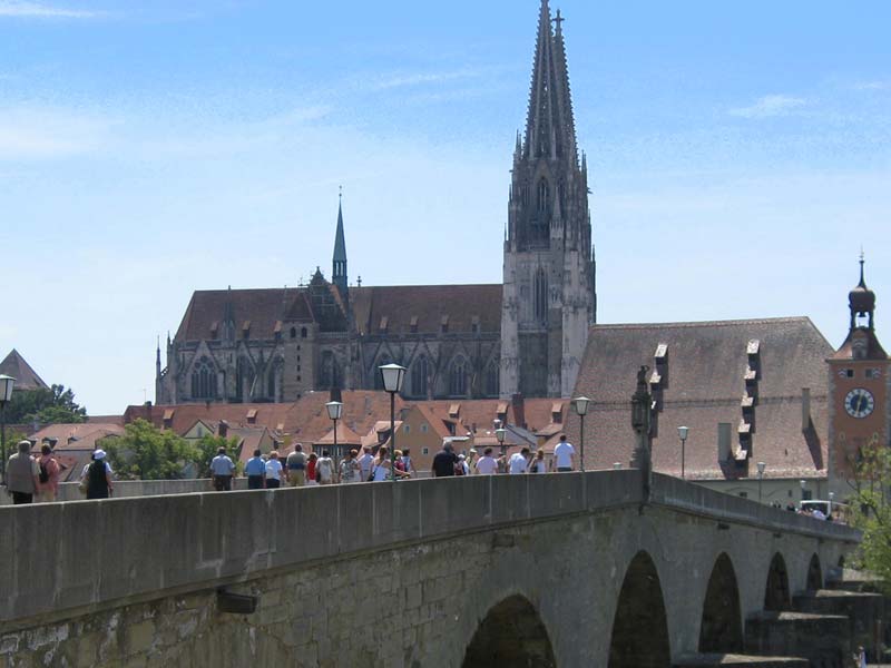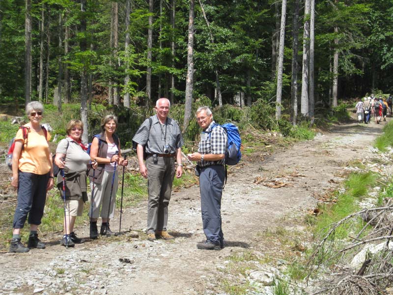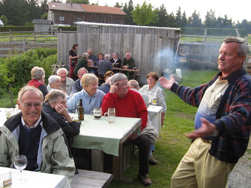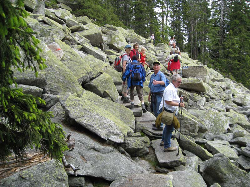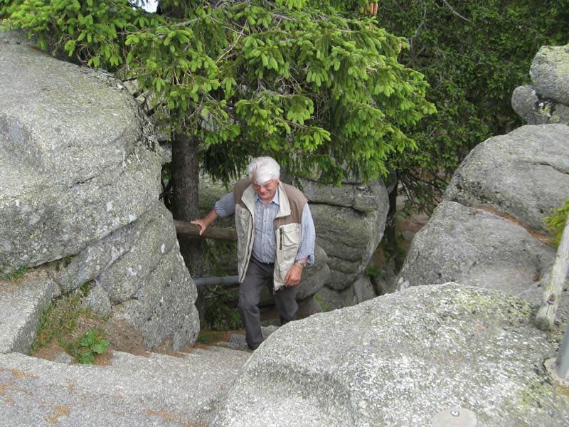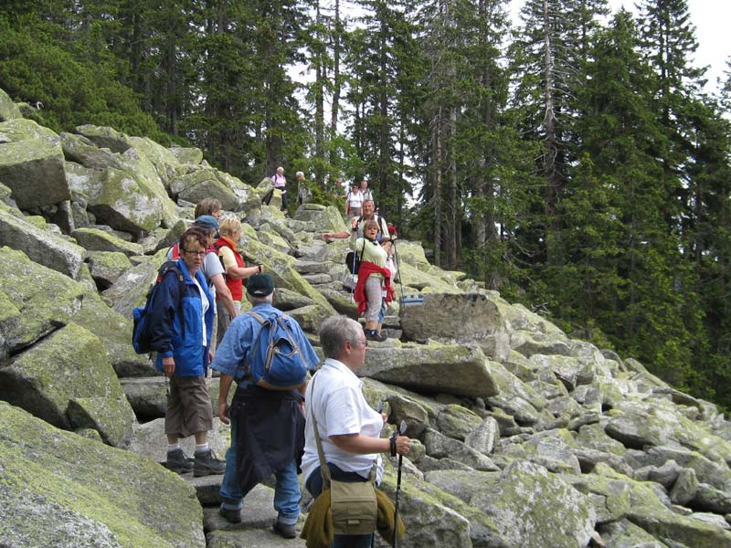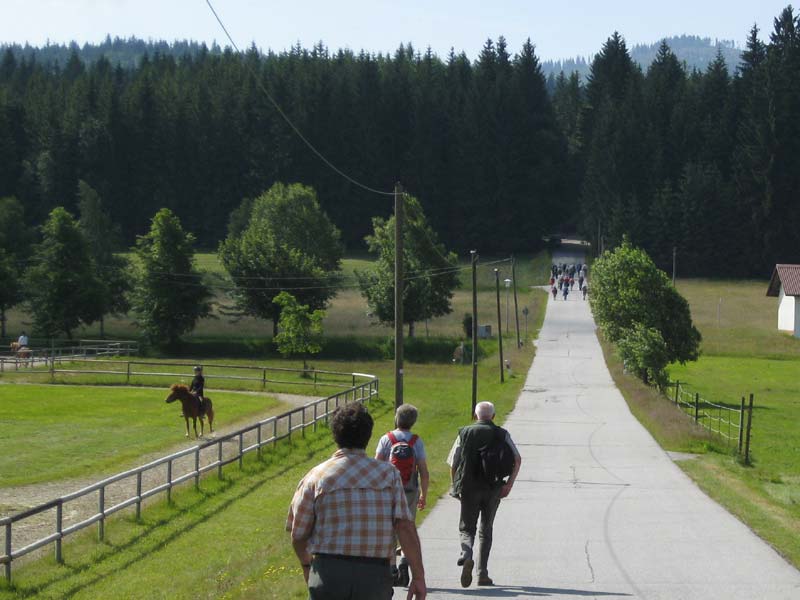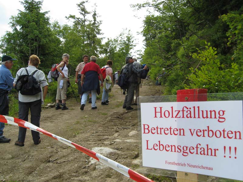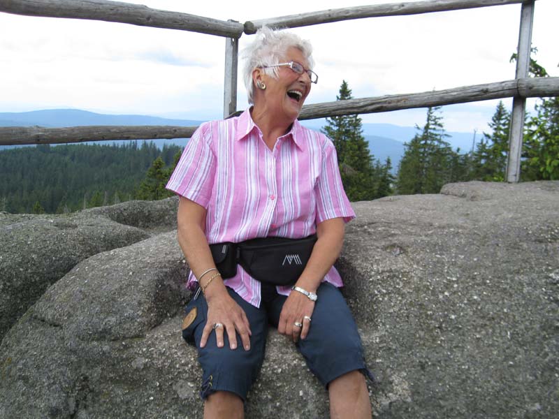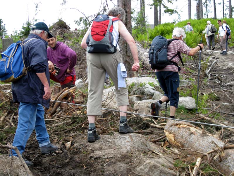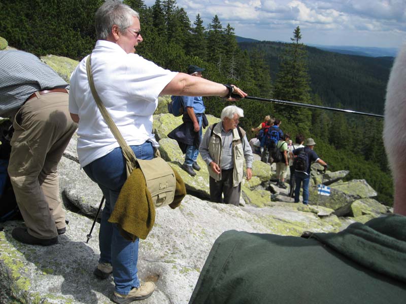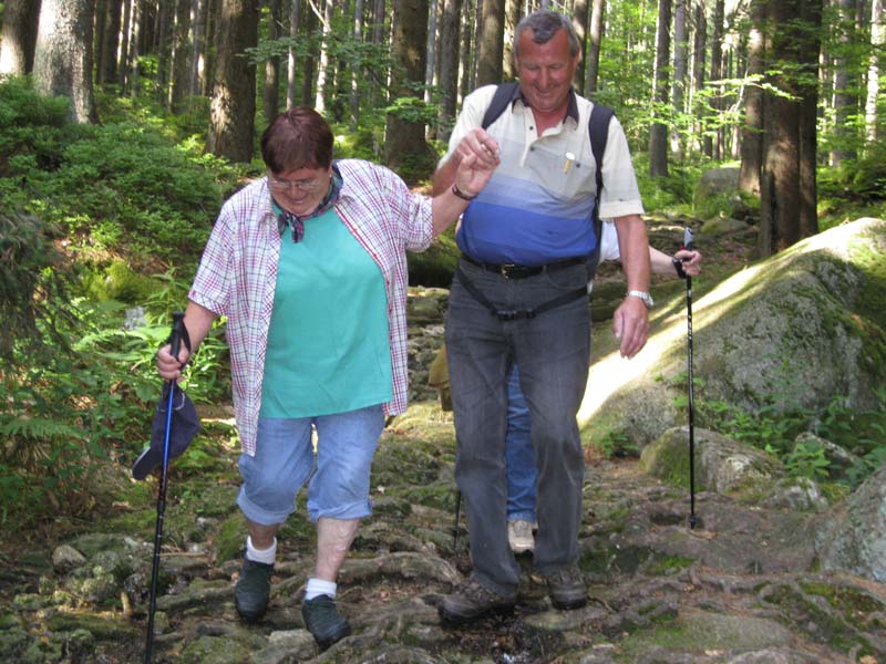 Die Eisenbahn, die zur Erschließung dieser Region 1912 von Passau in den Böhmerwald gebaut wurde, hat nach 1945 ihre Bedeutung verloren, wird aber auf  tschechischer Seite mit staatlicher Unterstützung noch betrieben. Bei zwei Bergtouren erkundeten die Wanderer die Besonderheiten des Naturparks „Bayrischer Wald“. Eindrucksvolle Felsformationen im „Steinernen Meer“ auf dem Abstieg vom Dreisesselberg (1312 m), anderntags ein besonders weiter Rundblick auf dem Lusen (1375 m), lohnten die Anstrengungen. Doch auch mächtige, abgestorbene Fichtenstämme als sichtbare Folgen des Waldsterbens säumten den Weg. Abends rundete ein geselliges Beisammensein mit Musik, Sonnwendfeier und guter Bewirtung den erlebnisreichen Tag ab. Auf der Heimreise wurde in der einst mächtigen freien Reichsstadt Regensburg, in deren Mauern im Mittelalter die Reichstage abgehalten wurden, Station gemacht. Wichtige Handelswege und die Steinerne Brücke über die Donau begründeten im frühen Mittelalter den Reichtum der Kaufleute und der Stadt Regensburg, die heute zum „Weltkulturerbe“ zählt.