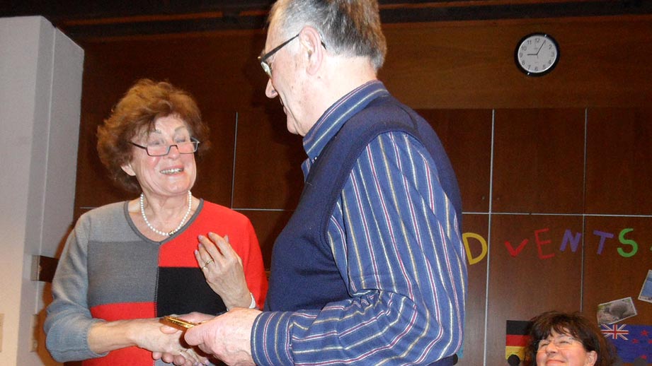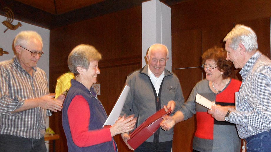 Der kommisarische Vorsitzende Gerhard Hohmann lies das zurückliegende Jahr aus Verwaltungssicht Revue passieren, verbunden mit einem Ausblick. Als Ärgernis des Jahres habe sich die mutwillige Zerstörung der Panoramatafel am Diefenbacher König erwiesen, die 2006 am Aussichtspunkt angelegt wurde. Nach Spendenzusagen könne in absehbarer Zeit eine Neuanfertigung in Auftrag gegeben werden. Aktuell – 100 Jahre nach Ende des Ersten Weltkriegs – wolle man auch die Restaurierung des Kriegerdenkmals angehen, nachdem das Denkmalamt „grünes Licht“ gegeben habe. Auch hier hoffe man auf Spenden. Aufgrund des Neubaus des Pflegeheims „Haus Zion“ sei es zudem erforderlich, die vor neun Jahren gepflanzte Schiller-Linde durch eine Fachfirma umsetzen zu lassen. Nach dem Kassenbericht von Helga Klein und dem Bericht der Kassenprüferin Hella Strobel sowie der Wanderwarte Konrad und Helga Köhler beantragte Horst Merz für die Versammlung die Entlastung der Vorstandschaft. Diese wurde einstimmig bei Enthaltung der Betroffenen erteilt. Als weitere Kassenprüferin wurde Liane Garbe gewählt. Zur Ehrung treuer Mitglieder war eigens die Vorsitzende des Stromberggaus, Christel Krumm aus Freiberg, angereist. Seit vier Jahrzenten halten Horst Merz und der frühere Vorsitzende Reinhold Roller der Ortsgruppe die Treue, und seit 25 Jahren Gabi und Arnold Engelhardt, Heidi und Detlef Fritsche, Ursula und Manfred Gültlinger, Oskar Hagenbucher sowie Helga und Stefan Klein.