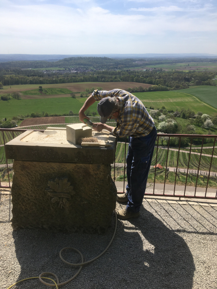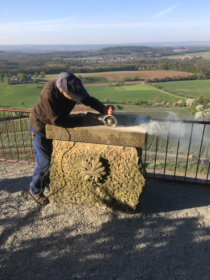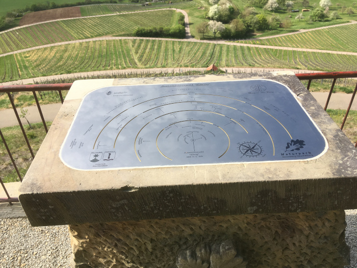 Im August 2017 wurde die bronzene Panoramatafel auf dem Aussichtspunkt „König“ in den Weinbergen von Diefenbach von Metalldieben gestohlen. Mit brachialer Gewalt wurde die Orientierungstafel aus dem Sandsteinsockel gerissen. Ein hoher finanzieller und immaterieller Verlust. Seit Mitte April 2020 zeigt nun wieder eine Panoramatafel den Besuchern des „Königs“ die Landmarken in nah und fern. Um einen erneuten Diebstahl der Tafel zu vermeiden, haben wir uns entschieden, die neue Tafel in Edelstahl ausführen zu lassen. Wir wollten die neue ansprechende Tafel ursprünglich in einem festlichen Rahmen auf dem Mandelblütenfest der Öffentlichkeit übergeben. COVID-19 hat uns allen hier leider einen ganz dicken Strich durch die Rechnung gemacht.