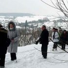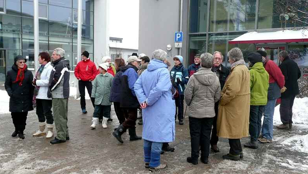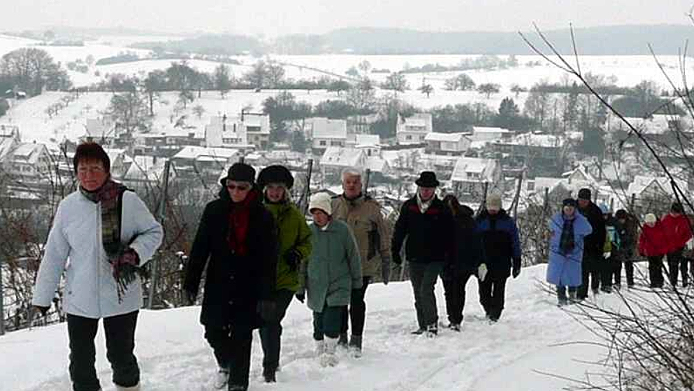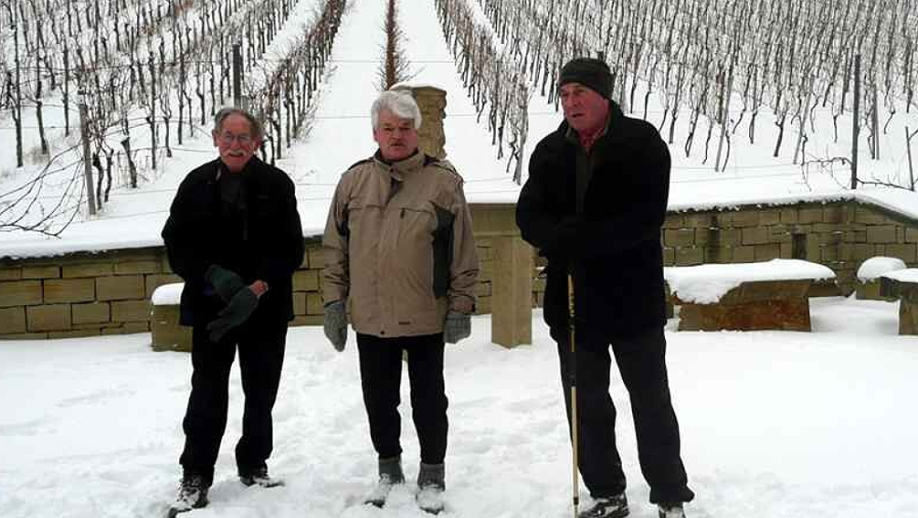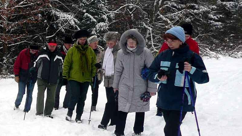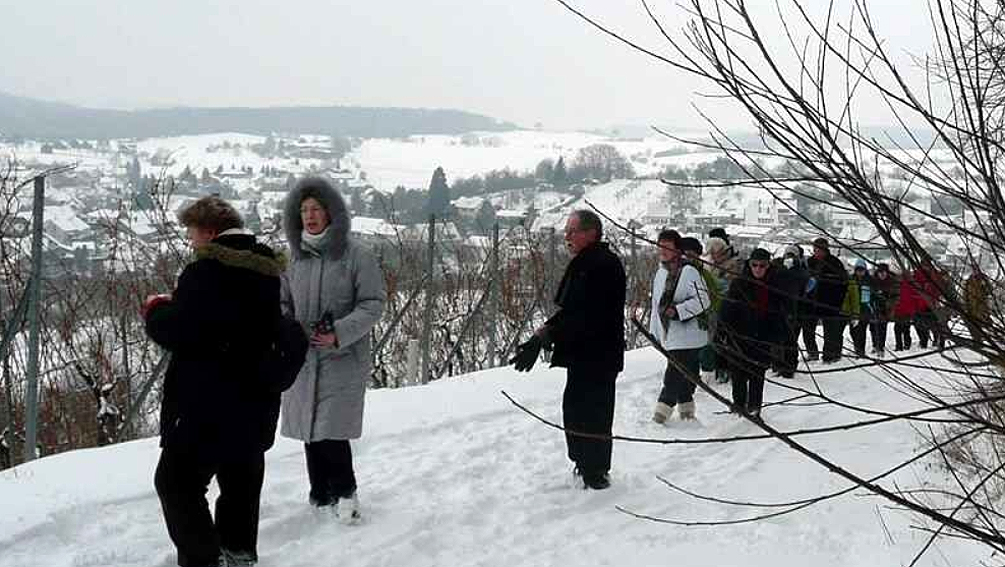 So war es geplant, aber 15 cm Neuschnee, die uns Petrus am Vortag vom Himmel schickte, ließen es nicht ratsam erscheinen, 2 1/2 Stunden über tief verschneite Wiesen und Waldwege rund um den Gleichenberg zu stapfen. Die schonendere Wanderstrecke durch die Weinberglandschaft um Diefenbach fand deshalb breite Zustimmung bei allen Teilnehmern.