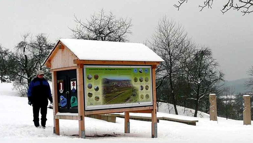 Nach einem Ortsrundgang ging es zum Stellensee, Wildschweingehege und zum „König“. Hier genossen wir die schöne Aussicht über die tief verschneite Landschaft. Über den „Wilden Fritz“, der sichtlich fror, vorbei am „Bachus“, ging es zum Königsbüchele. Hier konnten die weiteren Sandsteinskulpturen besichtigt werden. Unsere Wanderfreunde aus Güglingen und Zaberfeld waren beeindruckt von der Gemeinschaftsaktion der Diefenbacher Wengerter. Nach 2 1/2 Stunden erreichten wir wieder unseren Ausgangspunkt bei der Gemeindehalle. Der schöne Wandertag endete mit einer Einkehr in der „Dreschhalle“ und fand einen schönen Abschluss.