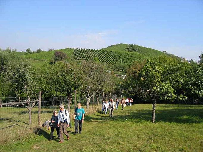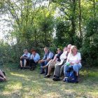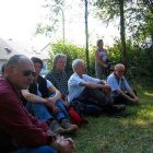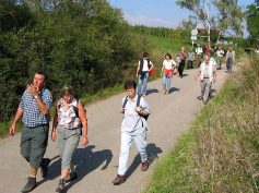 Die Wanderung von Sternenfels aus über die Sieben Buchen und das Oberderdinger Horn führte die etwa 30 Teilnehmer zum Schillerblick am Knittlinger Ortseingang. Fast auf den Tag genau vor 223 Jahren, in der Nacht vom 22. auf den 23. September 1782 kam Schiller hier auf seiner Flucht vor Herzog Carl Eugen von Württemberg vorbei. „Wir stehen hier an einer Stelle, die Schillers Leben geteilt hat“, so Hansjörg Ziegler, der den literarischen Teil der Wanderung mit dem Gedicht “Teilung der Erde“ eröffnete.