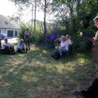 Als Schiller hier die Grenze nach Baden überschritt, stand er genau in der Mitte seines Lebens. Zusammen mit seinem Freund Andreas Streicher flüchtete er vor Kasernierung und Militärdrill in der Hohen Carlsschule, wo er dem Herzog als Regimentsmedicus diente, insbesondere aber vor dem vom Landesherren verhängten Schreibverbot und der angedrohten Festungshaft. „Den Besuch des russischen Zaren Paul I. in Stuttgart nutzten Schiller und sein Freund Streicher für die Flucht. Mit der Postkutsche ging es über Enzweihingen, wo man Kaffee trank, und Illingen zur Umspannstation Knittlingen, damals „Grenzstadt“, erklärte Ziegler. „Schiller suchte seine Hoffnungen im Ausland. Nach dem großen Skandalerfolg bei der Uraufführung seiner „Räuber“ in Mannheim wollte er dort Theaterschriftsteller werden“. Schiller habe das Theater und seine Stücke als „moralische Besserungsanstalt“ für das Publikum gesehen, an diesem Traum wollte er in Mannheim weiterarbeiten. Unter dem knorrigen Birnbaum am Schillerblick kam es dann auch noch zu einer theaterreifen Szene: Als Räuberhauptmann Karl Moor ließ Hansjörg Ziegler seine Räuberbande, also die Wanderer, Schillers Räuberschwur ablegen. Der zweite Teil der literarischen Lesung fand im Knittlinger Gasthaus Kanne-Post statt. Die Schüler Hagen und Rüdiger Garhöfer umrahmten am Klavier mit Stücken von Schiller-Zeitgenosse Ludwig van Beethoven die weitere Schiller-Lesung.  Hier trug Hansjörg Ziegler verschiedene Schillerballaden wie „Der Handschuh“ oder auch „Die Bürgschaft“ vor. „Freundschaft und Treue war in Schillers Leben und Werk stets ein ganz wichtiges Thema, weil er sie erfahren und davon profitiert hat“, so Hansjörg Ziegler. Seine ganz großen Erfolge, die sich mit „Wallenstein“, „Wilhelm Tell“ und „Die Jungfrau von Orleans“ einstellten, konnte Schiller aufgrund immer stärker werdender gesundheitlicher Probleme nicht mehr voll auskosten: mit nur 46 Jahren starb er an einer Bauchfellentzündung.