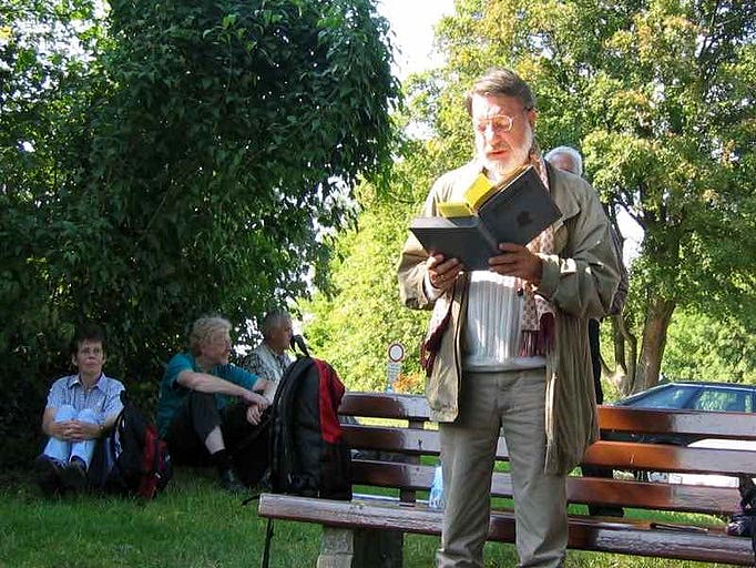 Zu einem ganz besonderen „Grenzpunkt“ im Leben des großen deutschen Dichterfürsten Friedrich Schiller führte die „Literarische Wanderung“, zu der die Sternenfelser Ortsgruppe des Schwäbischen Albvereins und die Kulturquelle eingeladen hatte. Am Knittlinger Schillerblick las der Illinger Autor und Schillerkenner Hansjörg Ziegler aus den Werken des großen Schwaben. Das Schillerjahr 2005 zum 200. Todestag des Dichters nahmen der Sternenfelser Albverein und die Kulturquelle zum Anlass für diese Schillerwanderung.