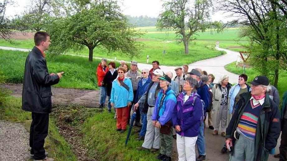 Per Rad oder zu Fuß waren die insgesamt etwa 500 Besucher zum Festgelände geströmt. Rund 50 von ihnen nutzten das zusätzliche Angebot der geführten Wanderung und machten sich unter der Führung von Klaus Haag (Ortsgruppe Sternenfels) auf zu den Eppinger Linien, dem historischen Verteidigungswall aus dem 17. Jahrhundert gegen Franzoseneinfälle.