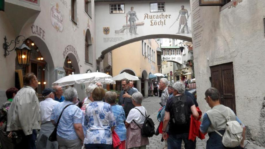 Die Rückreise führte uns in die südostbayrische Metropole Rosenheim. Bei einer Stadtführung konnten wir die Stadtarchitektur aus vielen historischen Blütezeiten bewundern. Erlöserkirche, Riedergarten, der Max-Josefs-Platz mit liebevoll restaurierten Bürgerhäusern, der Nepomukbrunnen und zum Schluß die Mittagseinkehr im traditionsreichen Gasthaus zum Stockhammer boten nahezu alles für Augen und Sinne. Unser Dank gilt den Reiseleitern Heinz und Monika Rieger (OG Güglingen), für die wieder sehr schöne Wanderreise ins Tiroler Land.