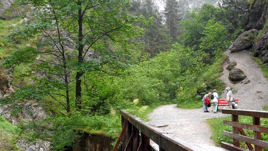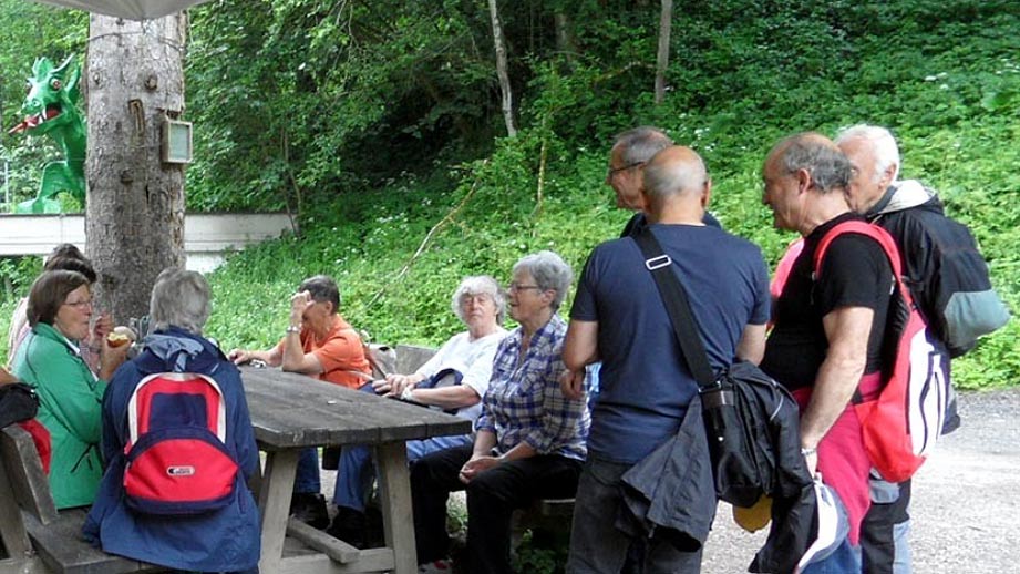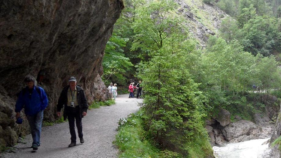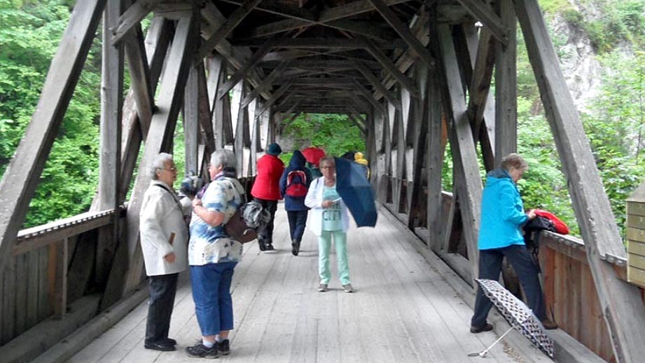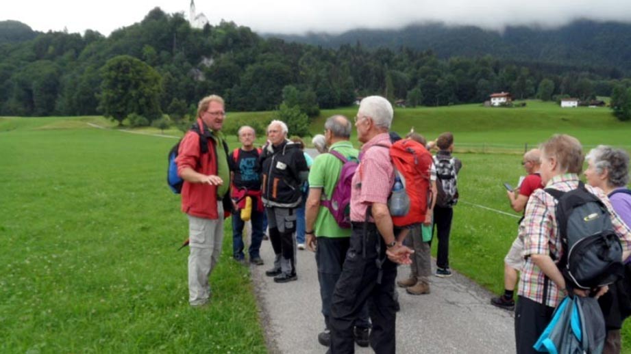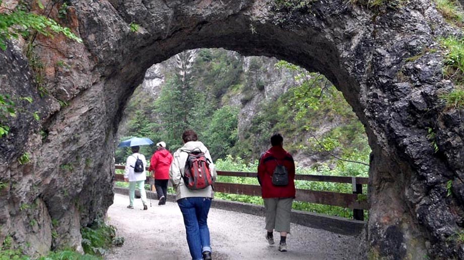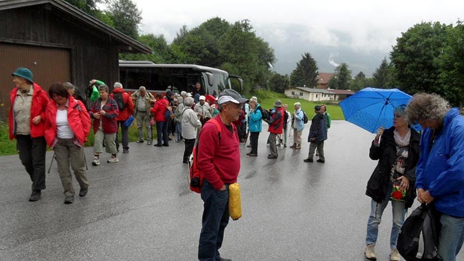 Mit Bergführer Gerhard ging es zunächst, mit Blick aufs Kaisergebirge und St. Nikolauskapelle, leicht ansteigend zum Ebbser Wasserfall. Vorbei an typische Bergbauernhöfen wurde der Anstieg immer steiler und bei Nieselregen ereichten wir um die Mittagszeit die Aschinger Alm (967m). Nach einer kurzen Rast, setzte beim Abmarsch anhaltender Regen ein, so dass wir durchnässt beim „Oberwirt“ ankamen. Der Wandertag war geprägt vom gewaltigen Eindruck der Kundler Klamm, eine Naturkulisse mit steil aufragenden Felswänden und der Wildschönauer Ache. Am Ausgang der Schlucht erwartete uns ein Bummelzug, der uns über das Wildschönauer Mühltal zur Schönanger Alm (1200 m) brachte. Nach der Mittagspause setzte wieder Regen ein, so dass zur folgenden Käsereibesichtigung Regenbekleitung angesagt war. Am Abend spielte im Hotel das Kaiserduo und die Volkstanzgruppe Ebbs traditionelle Tänze bei einem unterhaltsamen Heimatabend. Am Vormittag wanderten wir bei schönem Wetter zum Fohlenhof Ebbs und hoch zur St. Nikolauskapelle. Von dort aus bot sich uns ein herrlicher Blick auf Ebbs, Kufstein, das Inntal und die Kaiserberge. Wieder zurück gings kurz den Inn entlang, bevor uns der Bus ins nahe Thiersee brachte. Eine Wanderung rund um den See, mit Knabenkraut und Teichrosen und die umliegenden Berge sorgten für eine reizvolle Naturkulisse.