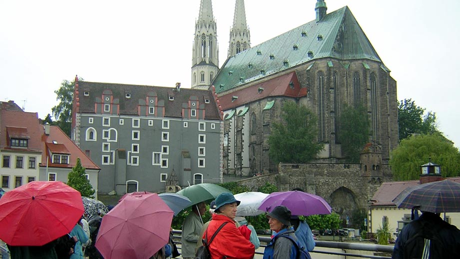 Das älteste Frauenkloster der Zisterzienser besteht seit 1234 ununterbrochen und präsentierte sich als farbenprächtiger Barockbau in einer weitläufigen Anlage. Vorbei an Herrnhut ging es weiter zur Stadtbesichtigung in Görlitz. Die Europastadt an der Neiße gilt als die schönste Stadt Deutschlands und war in beiden Weltkriegen unzerstört geblieben. Barocke Kaufmannhäuser, Renaissancefassaden und Wehrtürme prägen das Bild im Zentrum der Altstadt. Sehenswert waren Kaisertrutz und Reichenbacher Turm und die prächtigen Bürgerhäuser am Obermarkt. Zu den markanten Gebäuden am Untermarkt zählen das Rathaus aus dem 14. Jahrhundert, die Dreifaltigkeitskirche (ehemaliges Franziskanerkloster) und hoch über den Neißeurfer die Peterskirche mit ihren Doppeltürmen und der weltbekannten Sonnenuhr. Ein kurzer Gang über die Alstadtbrücke in den heute polnischen Stadtteil von Görlitz durfte nicht fehlen.
