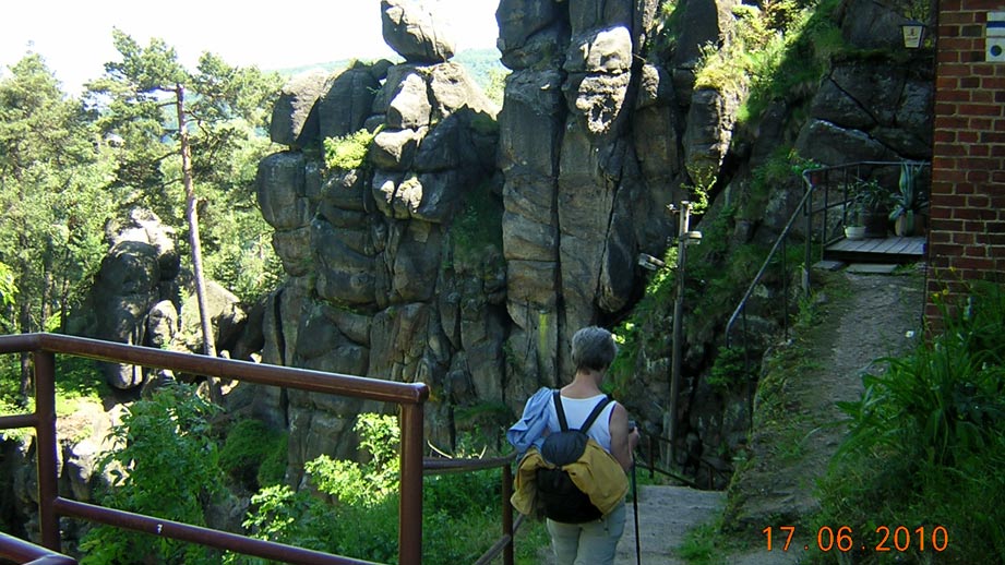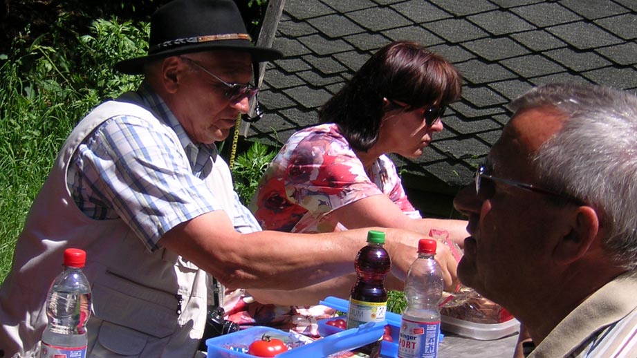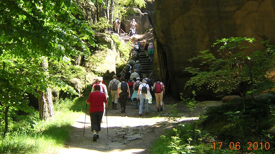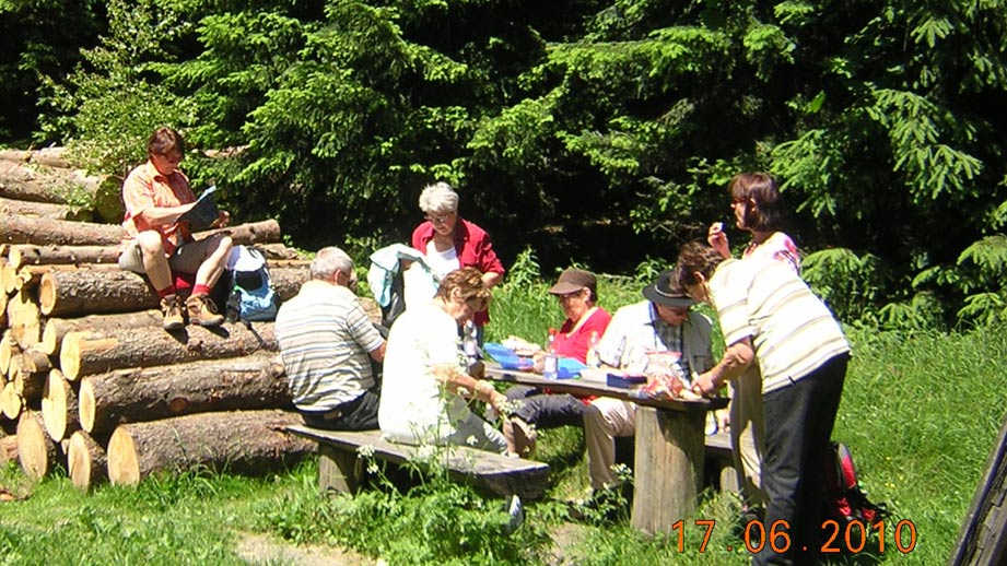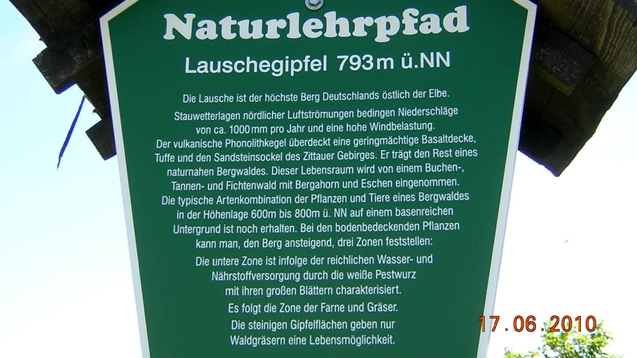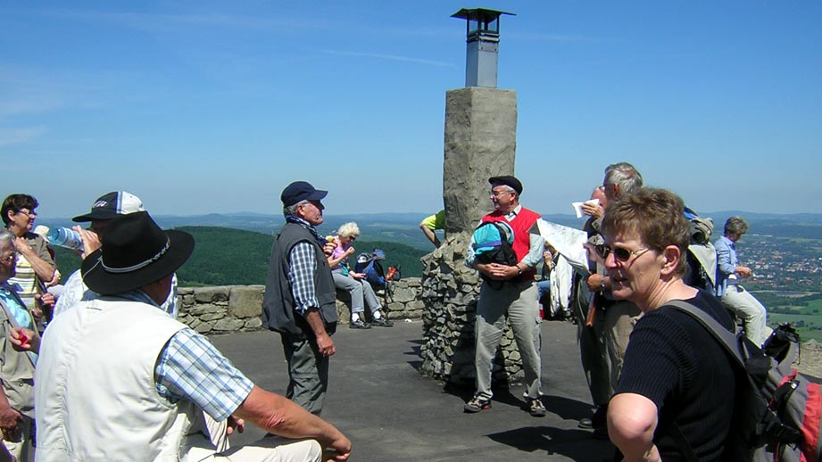 Der dritte Tag war Wandertag. Zunächst ging es mit dem Bus nach Waltersdorf am Fuße der Lausche. Hier teilte sich die Gruppe. Für die leistungstärkere Gruppe begann ein schweißtreibender Anstieg über die Eisgasse zum Schwarzen Tor. Auf dem Kammweg, immer in unmittelbarer Nähe zur böhmischen Grenze, wurde der Lauscheborn erreicht. Von dort führte erneut ein steiler Anstieg auf den Gipfel der Lausche, die mit 793 m die höchste Erhebung im Zittauer Gebirge ist.