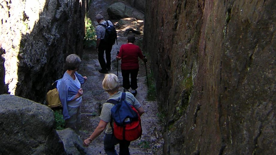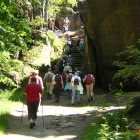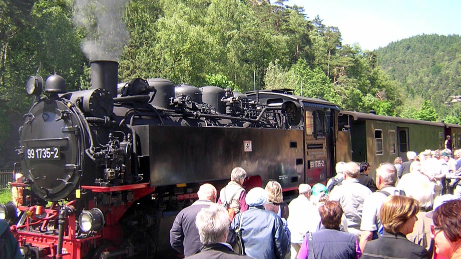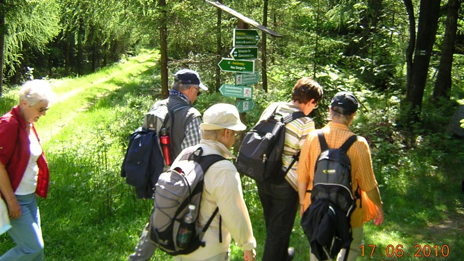 Das Wandergebiet im Dreiländereck zu Polen und Tschechien und die traditionsreichen Städte Erfurt, Görlitz und Zittau waren Ziel der 50-köpfigen Wandergruppe. Die Fahrt ging über Dresden, Bautzen und das Oberlausitzer Bergland ins Standquartier Oybiner Hof im Kurtort Oybin. Die Führung am folgenden Morgen begann zunächst mit einem Ortsrundgang, bevor die auch als Hochzeitskirche bekannte Bergkirche, ein Kleinod des deutschen Bauernbarocks, und die geschichtsträchtigen Stätten hoch oben auf dem Berg Oybin, die Burg und das Kloster besichtigt wurden. Nach der Mittagspause ging es mit Volldampf auf der Schmalspurbahn in gemütlicher Fahrt nach Zittau.