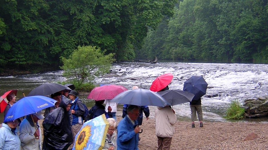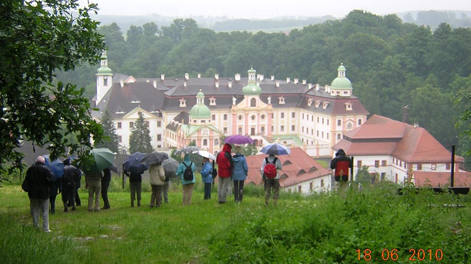 Eine gute Fernsicht übers Land bis ins böhmische Isergebirge, eine begeisternde Strecke und viele Naturerlebnisse krönten diesen herausragenden 5 1/2-stündigen Wandertag. Glücklich und zufrieden trafen sich dann alle wieder am Damastmuseum in Großschönau, dem ehemaligen Zentrum der deutschen Damastweberei. Einzigartige, wertvolle Damaste aus 3 Jahrhunderten und eine Vorführung an funktionstüchtigen Webstühlen beindruckten die Teilnehmer. Der Freitag begann leider mit Regen. Die vorgesehene Wanderung im Neißetal wurde deshalb zu einem informativen Sparziergang entlang der Neiße bis zum Kloster Marienthal genutzt, bevor im dortigen Zisterzienserinnenkloster eine interessante Führung begann.